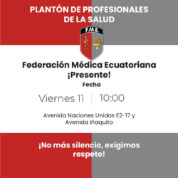 Este viernes 11 de julio a las 10:00 a.m., los profesionales de la salud nos concentramos en la Federación Médica Ecuatoriana para rechazar la Ley Orgánica de Integridad Pública, que vulnera gravemente nuestros derechos laborales y pone en peligro la atención a los pacientes. 📉 Esta ley: Precariza aún más a miles de trabajadores con Leer más🩺 ¡La salud está en riesgo por una ley injusta![…]